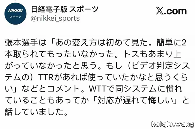 张本智和无缘决赛喊冤,欲用鹰眼投诉松岛辉空低抛发球