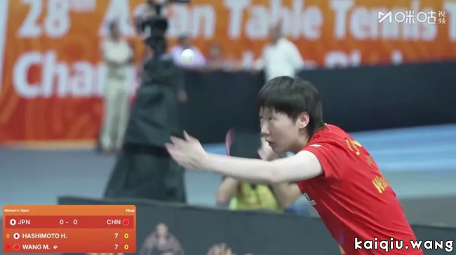 首盘对决在王曼昱与日本削球手桥本帆乃香之间展开。桥本以12-10先声夺人,但王曼昱迅速调整战术,凭借清晰的攻防部署连下三城,以11-3、11-6、11-3逆转取胜,拿下关键开门红。这也是王曼昱继瑞典大满贯后再度击败对手,将交手记录保持为全胜。