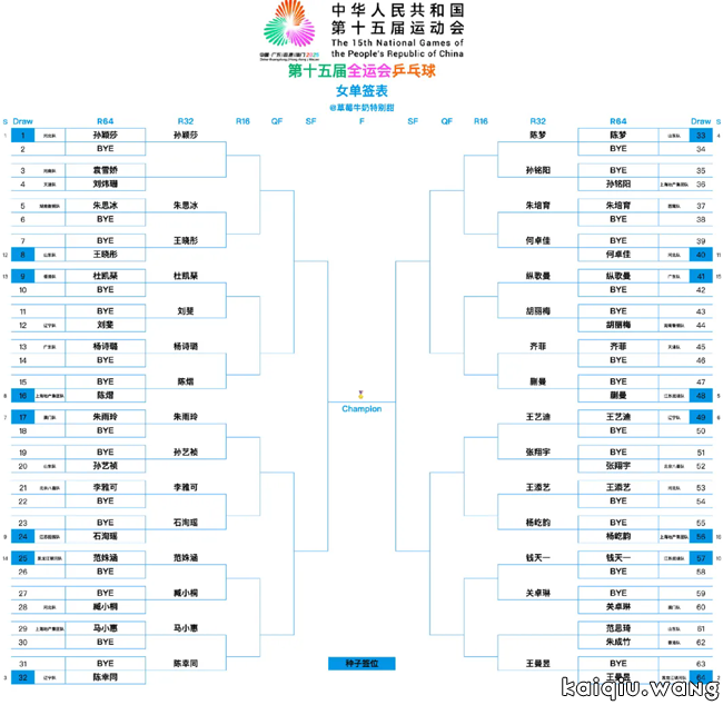 女单:孙颖莎王曼昱分区镇守,上下半区皆现“死亡之组”