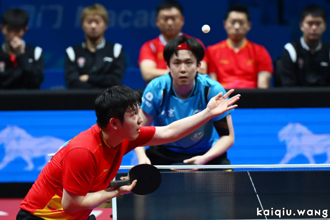 首盘双打:广东队的林高远/袁烜松对阵黑龙江队的徐瑛彬/曹巍。广东组合首局9-11憾负,之后迅速调整状态,以11-9、11-4、11-4连扳三局,3-1逆转取胜,为队伍拿下首分。