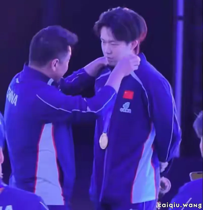 这份成长的背后,离不开王皓指导的悉心栽培。从技术打磨到心态调整,王皓一路陪伴与引导,成为了王楚钦最坚实的后盾。男单颁奖典礼后的大合影环节,王皓特意走到王楚钦身边耳语交流,手始终搭在弟子的肩膀上,还细心为他整理衣领,一举一动间,满是教练对弟子的疼爱与呵护。