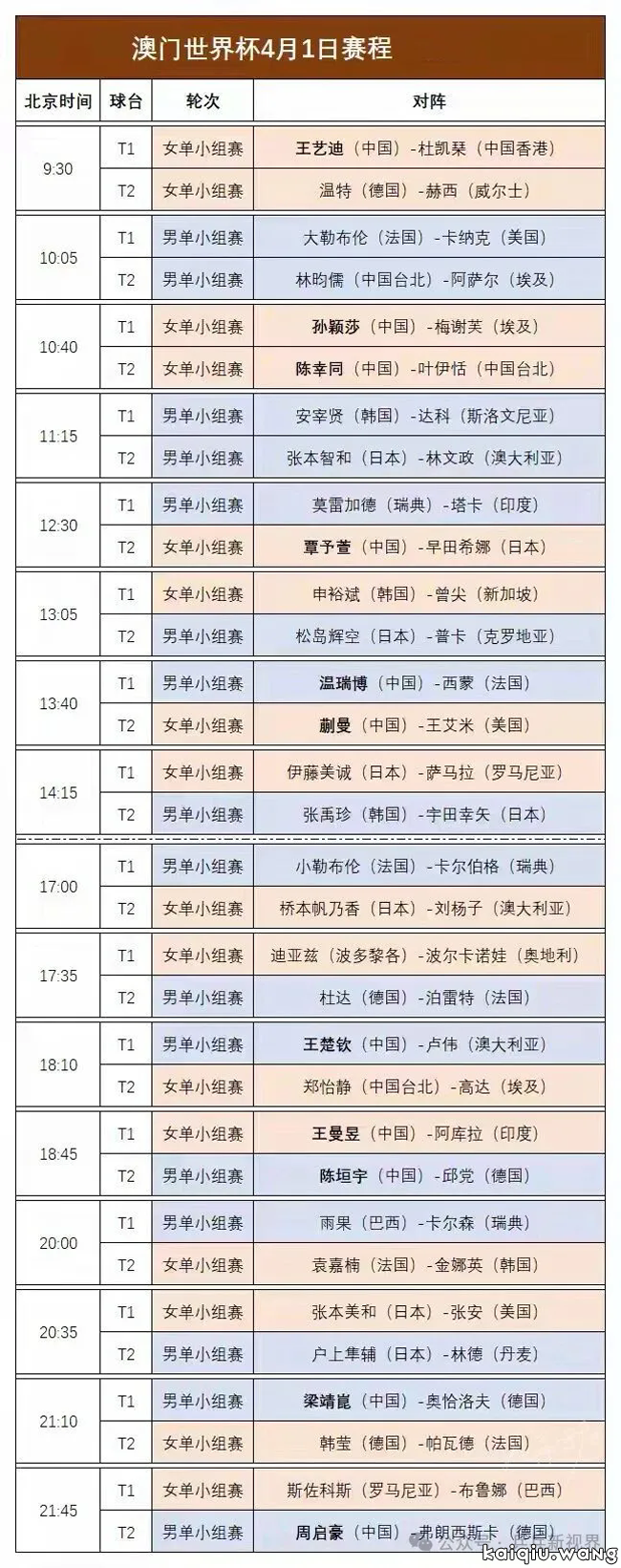 WTT澳门世界杯迎来终极决战!4月1日,小组赛最后一轮全面开打,16强名单今日全部诞生。国乒10人保持不败,仅梁靖崑1人爆冷失利,陷入出线绝境。