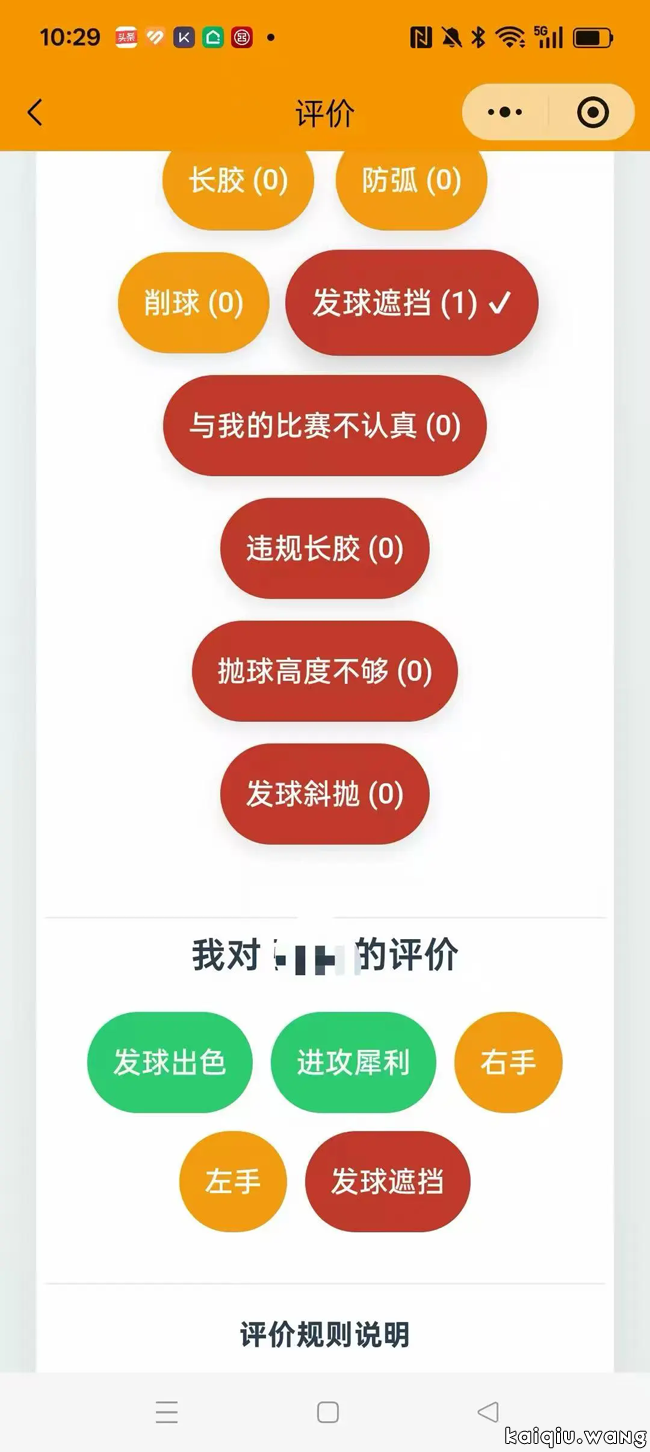 2) 在评价页面,可以看到“发球遮挡”