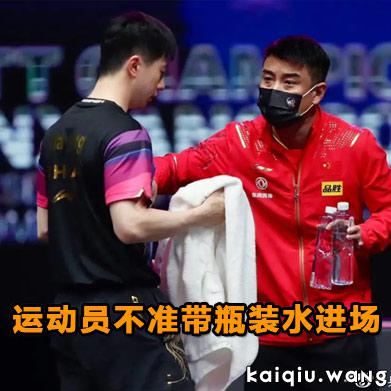 前几天,伦敦世乒赛发布新规:所有运动员、教练员禁止带任何自带水杯或一次性塑料瓶装水入场,只能用一个官方发的再生不锈钢水瓶,自己去场边饮水机接水喝。